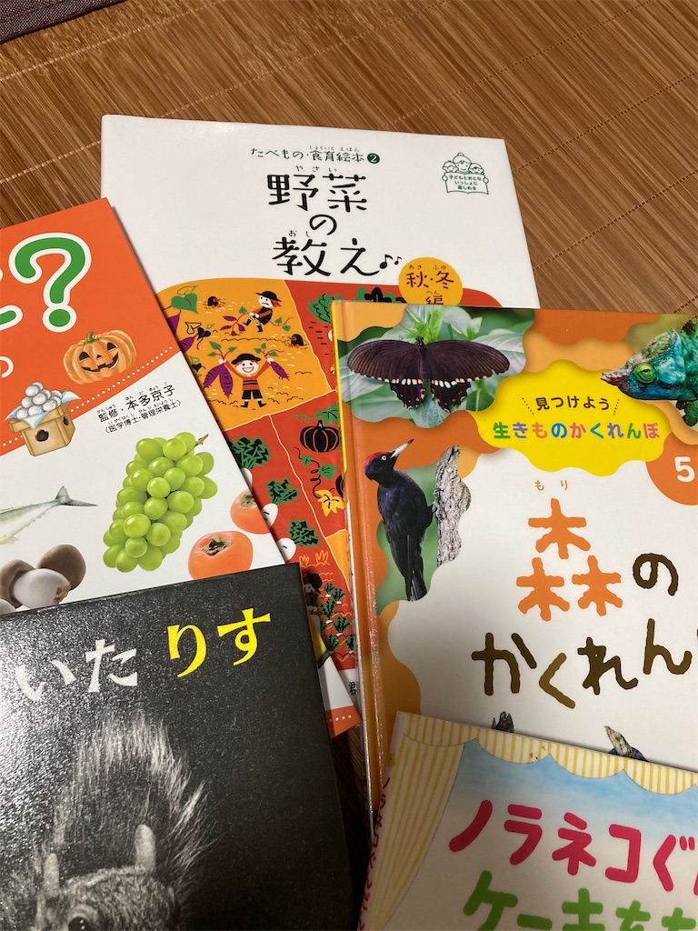 図書館には秋の本のコーナーがあり、ゆったり眺めました。